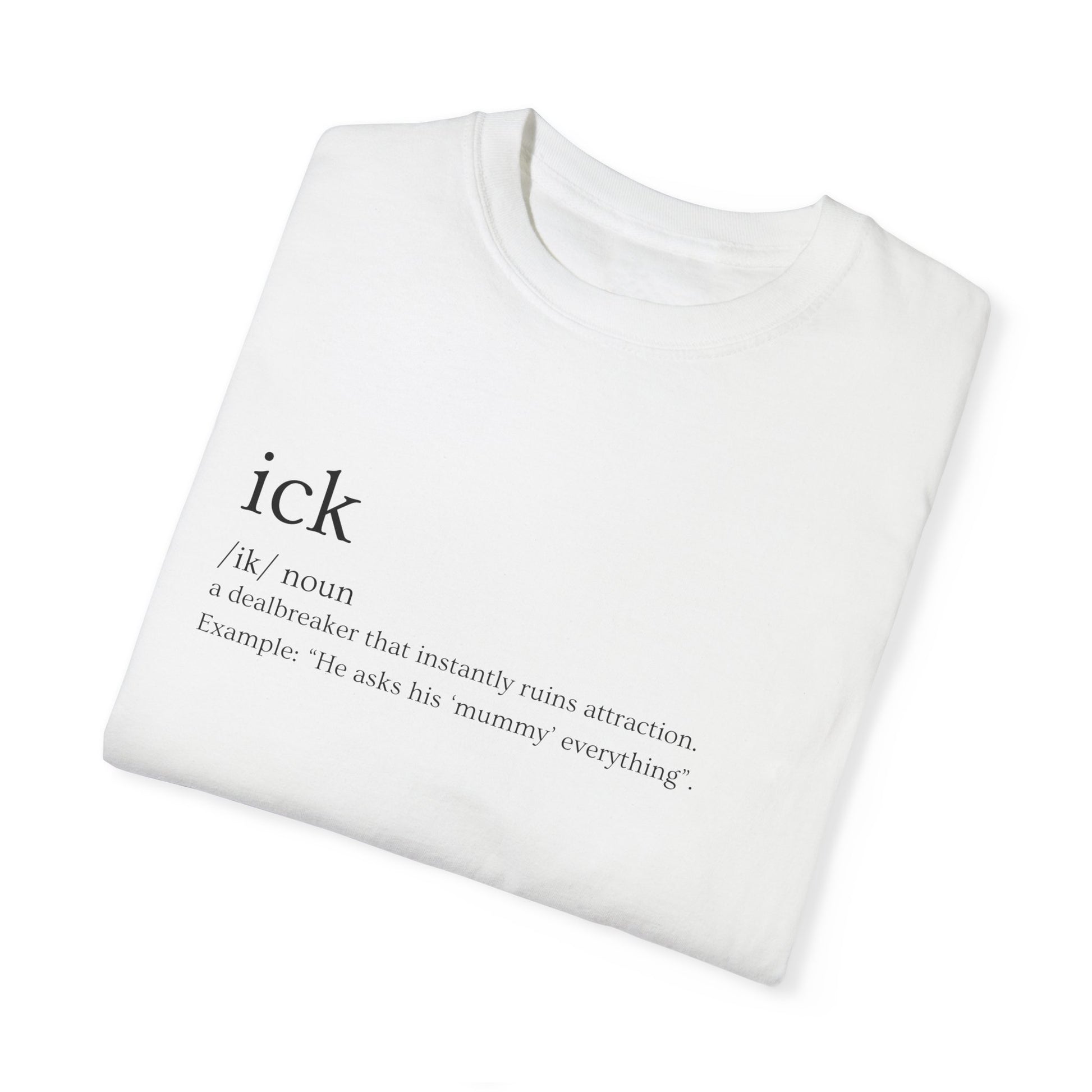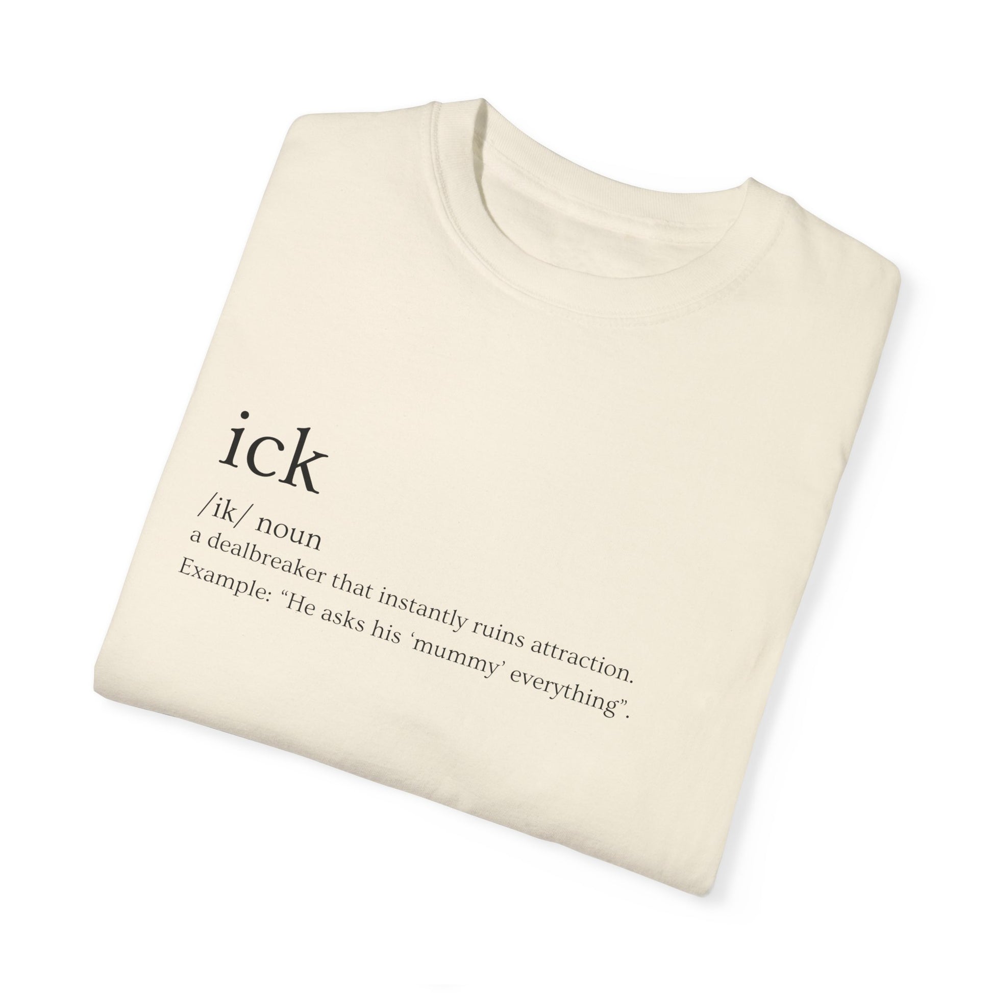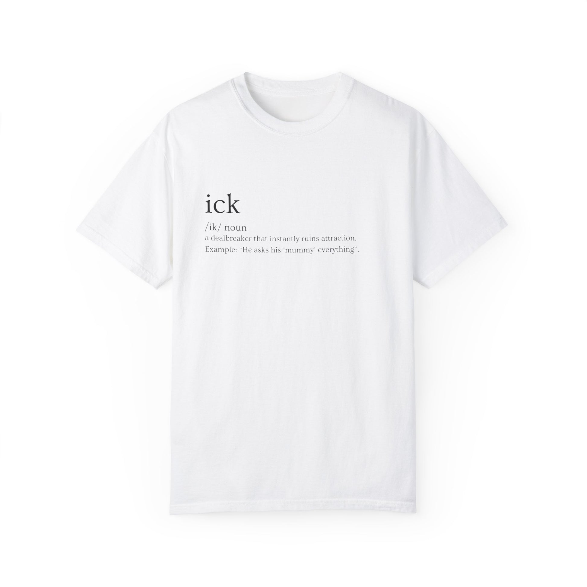 Once you spot the ick, there's no going back. Whether it's bad vibes, cringe habits, or major turn-offs—you know it when you see it. Our "Ick" tee calls it out, loud and clear. Printed on heavyweight Comfort Colors 1717, it’s for those who aren't afraid to raise the bar.