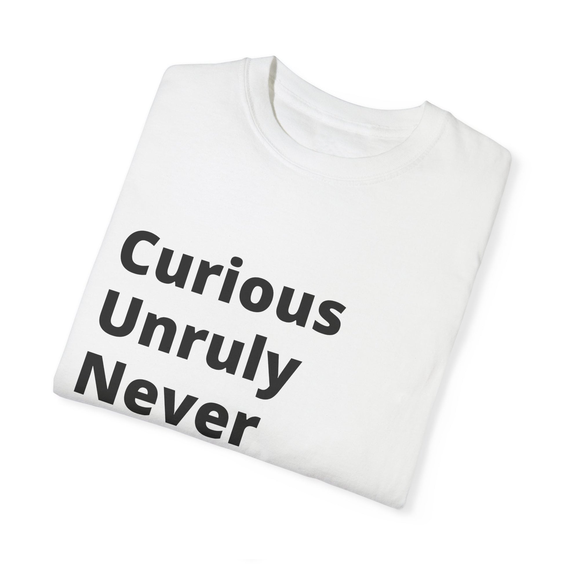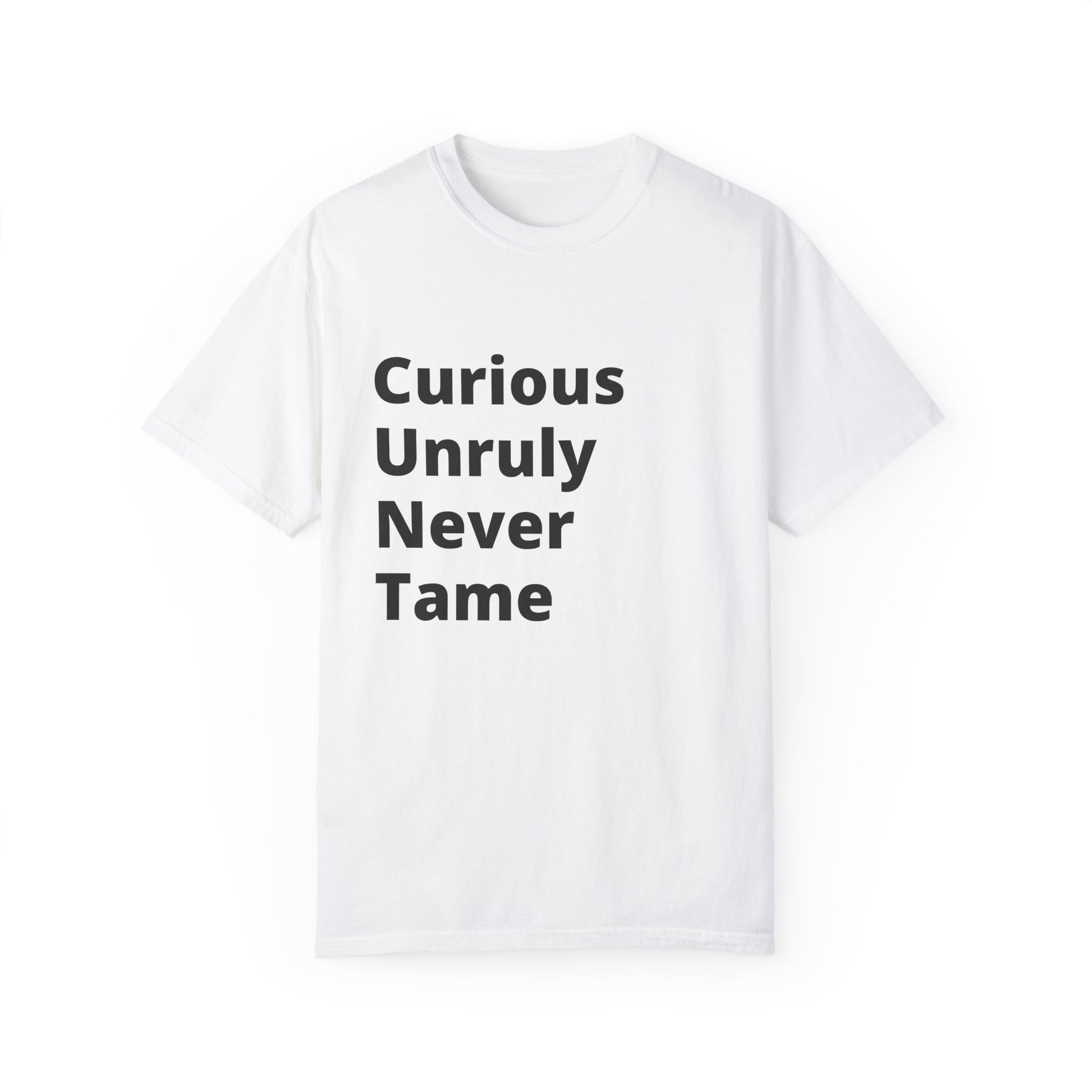 Unleash your rebellious streak with the Curious Unruly Never Tame tee – a bold statement that hits different when you pay attention. Rock it for the vibes, stay for the double meaning. 😏