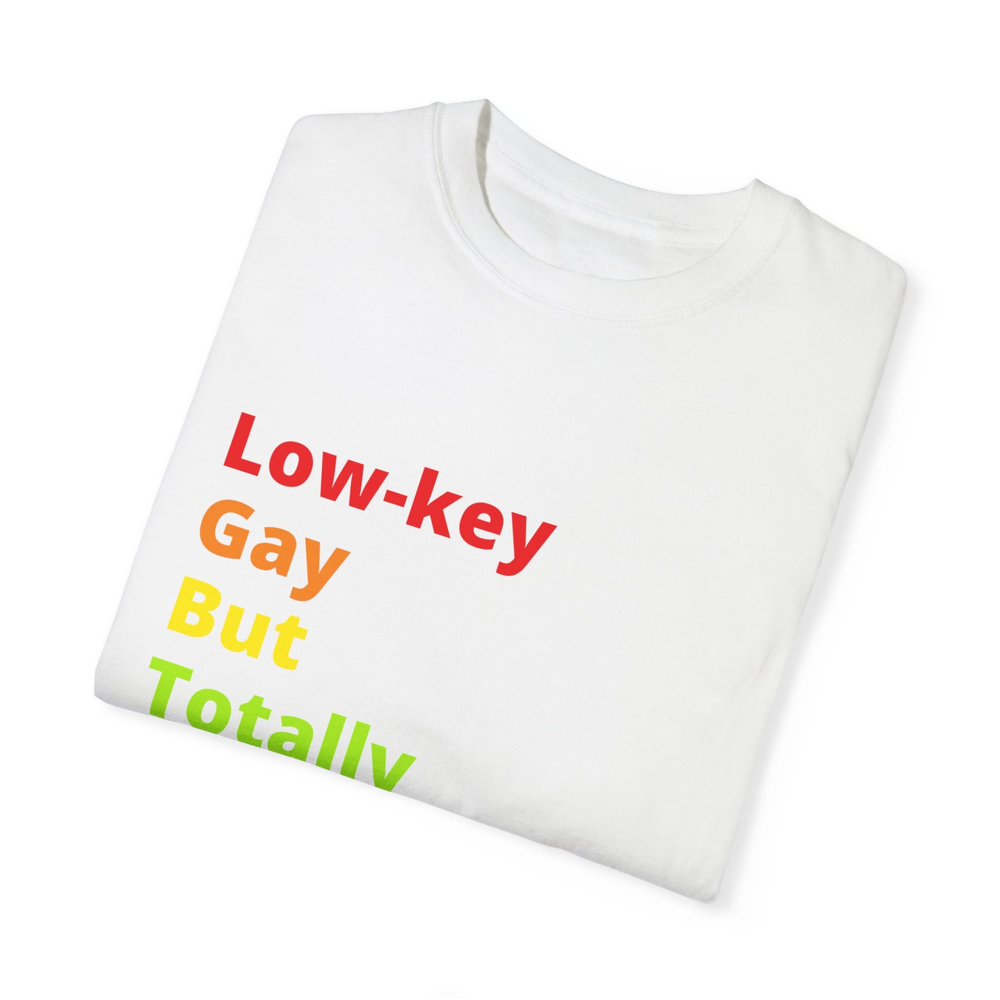 "Low-key Gay But Totally Queer" Tee (aka: Stealth mode off, full rainbow on. 🌈🔥)